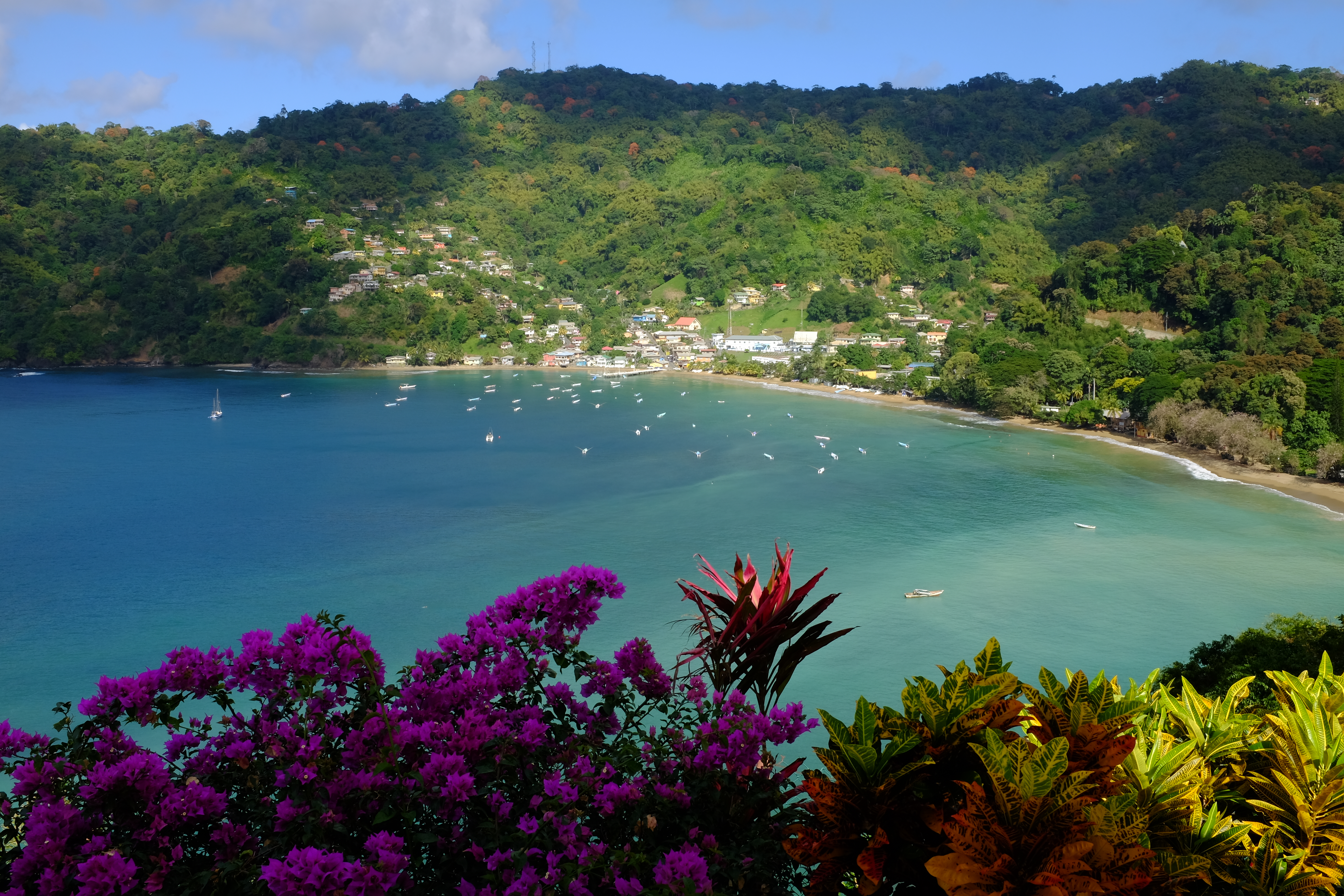Tobago est la chanceuse de ces îles. A l’écart de la route des bateaux de location et des charters, elle profite du dynamisme économique de sa grande sœur Trinidad pour pouvoir vivre aisément. On y a compté moins de 20 bateaux pour l’ensemble de l’ile, quelle tranquillité. Charlotteville, au nord, est la baie idéale. Sa courbe soulignée par une belle végétation fleurie est parfaite, le village de pêcheurs anime la plage, La Grande Lulu s’y dandine de plaisir. C’est l’endroit idéal et que nous conseillerions pour une arrivée de transat. Le rêve antillais n’y est pas brisé, bien au contraire.