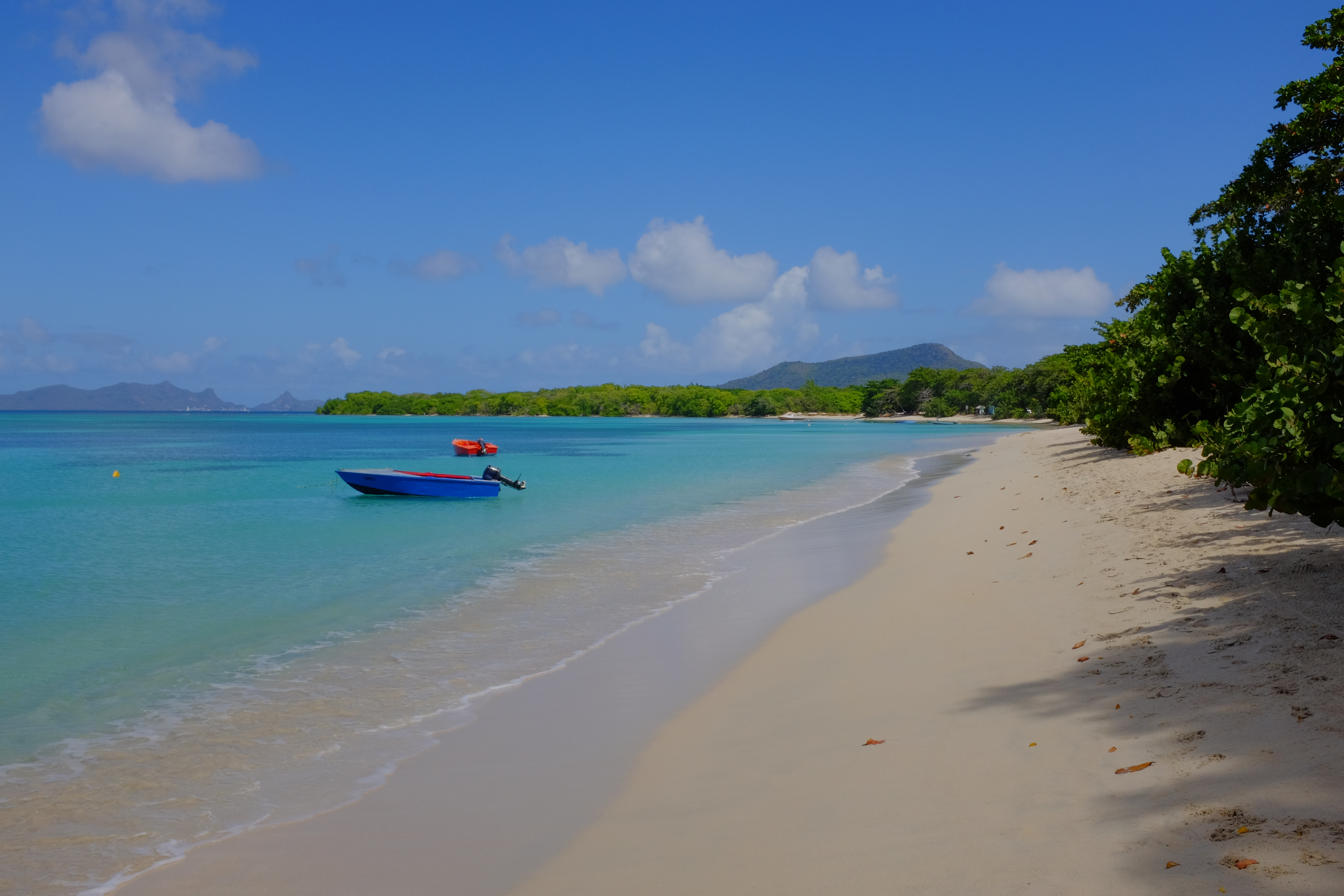 Avec bonheur nous cabotons de cartes postales en tableaux pastel. Notre plaisir est sur l’eau, au ras de la côte à jouer avec le vent et les courants. Seulement quelques heures de navigation entre deux mouillages et nous ne sommes jamais pressés d’arriver, alors nous trainons, voilure réduite, et nous admirons la beauté des îles. Sans cesse nous nous émerveillons des paysages. Tous les jours nous trouvons le plus beau mouillage, la plus merveilleuse plage, l’eau la plus lumineuse, le village le plus accueillant, … Mais arrêtons les comparatifs et les superlatifs, inutile de hiérarchiser, apprécions chaque instant, chaque lumière, ils sont si nombreux à être exceptionnels.