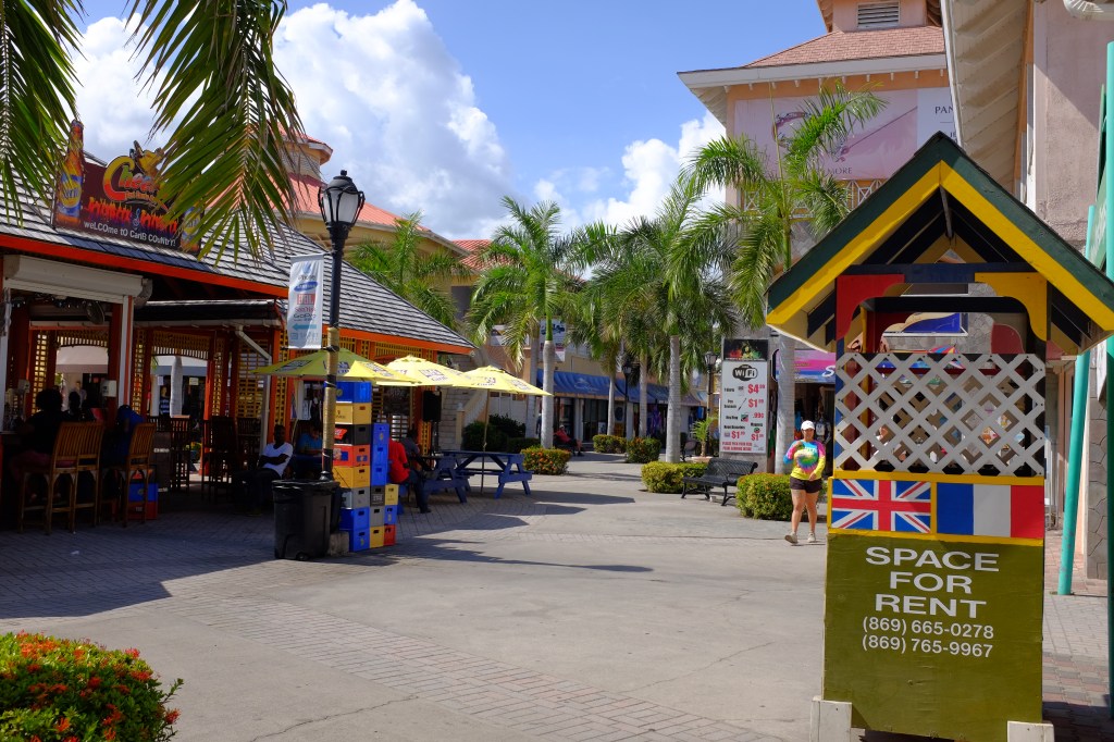 Un décor de ville a été construit en bout des appontements pour paquebots. L’architecture flirte entre vrais faux docks restaurés et maison caribéennes. Un grand boulevard, des rues perpendiculaires, une place centrale, le tout rempli de guet-apens en forme de boutiques de luxe. Les armes sont prêtes, aucun dollar ne doit réchapper. Et comment attirer les grands bateaux de croisière dans ce piège ? Simplement en promettant le luxe ostentatoire au prix des économies d’un middle class. Surenchère d’offres extraordinaires, des diamants aussi gros que certifiés, du chocolat mieux que mieux à 14 $ la tablette, des copies de tout, vêtements, maroquinerie, joaillerie. Si à 50 ans tu n’as pas ta Rolex c’est que tu n’es pas venu à S-Kitts. Les pirates sont organisés, ici c’est le clan des hindous, ils tiennent l’ensemble de ce quartier-piège. Tu ne peux pas leur échapper, tu crois entrer flâner dans une boutique de fringues, tu ressors par la bijouterie après avoir traversé l’épicerie fine mais c’est toujours le même tiroir-caisse.