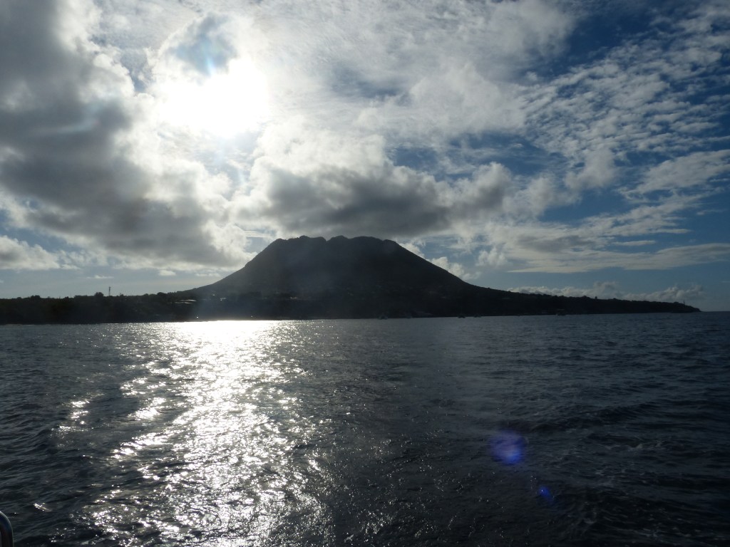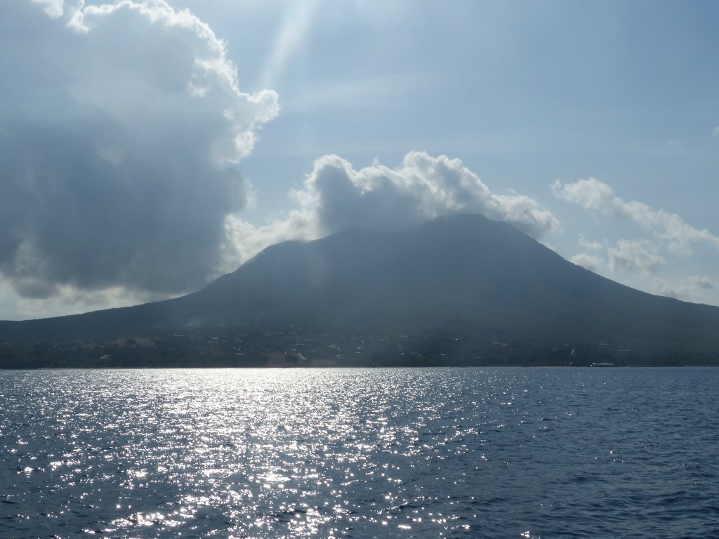 Nevis & St-Kitts, elles forment à elles deux un minuscule état indépendant. Un peu secoués par ce que nous avions aperçu de Montserrat nous nous demandons ce que nous allons trouver dans ce petit pays qui passe sous les radars du tourisme. Nevis est un joli petit volcan comme celui que l’on imagine dans nos dessins d’enfants, un cône , haut de 900 mètres retombant en pente douce vers les plages.
