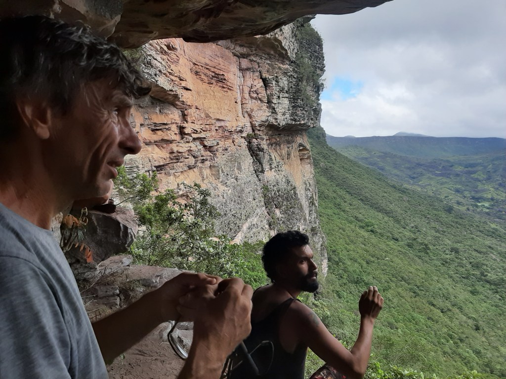 La découverte, l’émerveillement, les rencontres, tous ces ingrédients qui font l’essence de notre voyage sont réunis. Les paysages sont à couper le souffle, ici nous mesurons la beauté de la nature, l’espoir de constater qu’elle s’est remise de l’exploitation anarchique des sous-sols et le désespoir quand nous apprenons que Bolsonaro rêve de relancer l’industrie du diamant. Mais pour l’instant, dans ce petit bout de terre isolé, loin de toutes agitations, nous vivons des moments de plénitude. En passant du brésilien au français et à l’anglais, nous partageons tous la même émotion, insouciants car là haut, la tête dans les étoiles, le monde ne nous a pas encore rattrapé.