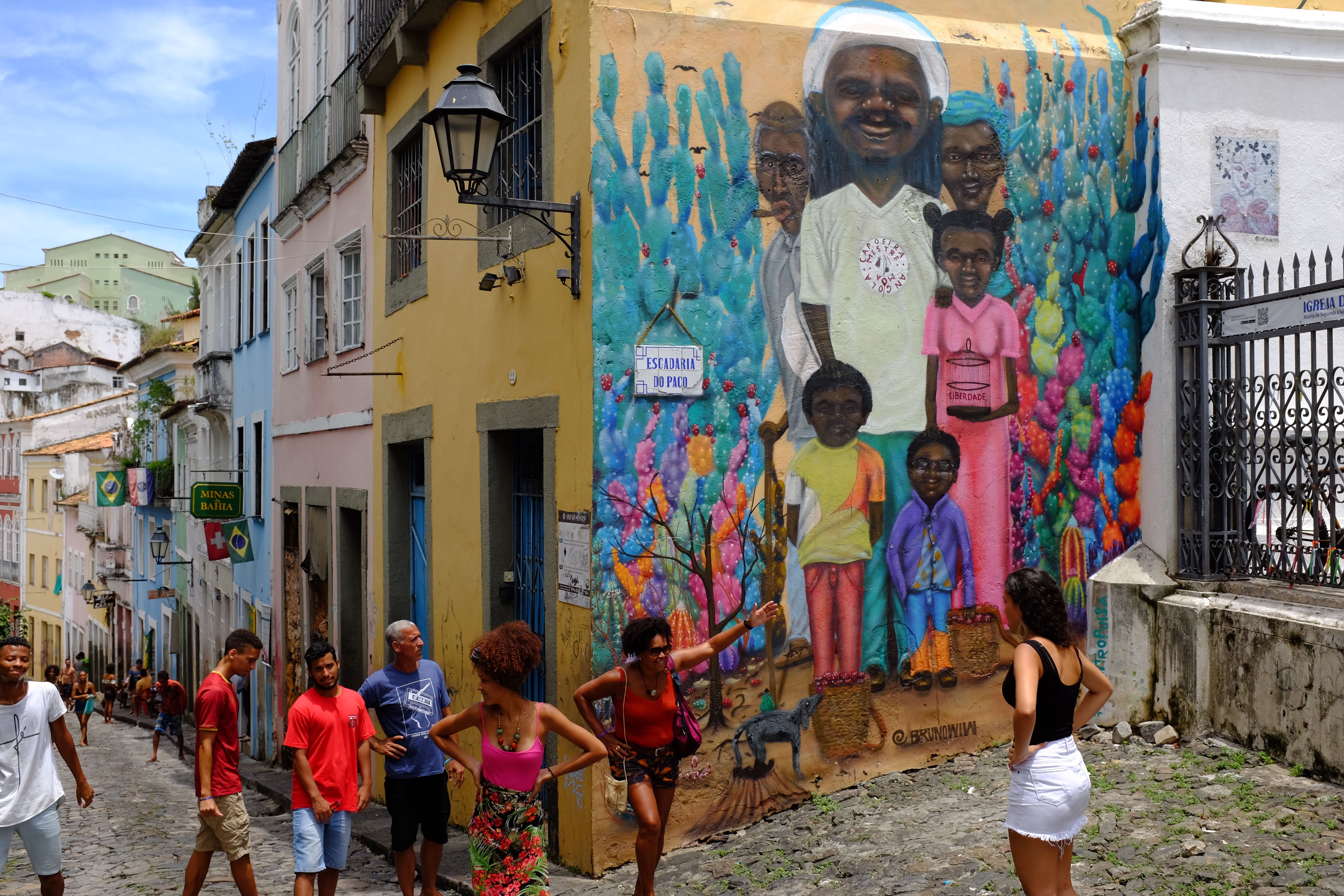Récife et Salvador, deux grandes villes où nous sommes passés, juste passés, à peine de quoi s’imprégner de l’atmosphère, d’en comprendre le fonctionnement, suffisamment pour voir que les riches sont très riches et les pauvres nombreux, que les touristes sont rassemblés dans quelques rues et que la vraie vie est juste après. La rue d’après, au début, on n’osait pas trop y aller, ou juste un orteil car on a reçu tellement de mises en garde sur l’insécurité que nous n’arrivions pas à faire le tri, mais petit à petit on s’y est « aventuré » pour enfin trouver une vie de quartier avec sa foule de gens affairés, ses commerces de bouches, les boutiques de fringues et les fameux restaurants au kilo, un concept à importer : c’est un self-service, on remplit son assiette, elle est pesée à la fin du présentoir et tout de suite on voit lequel est le plus gourmand des deux.