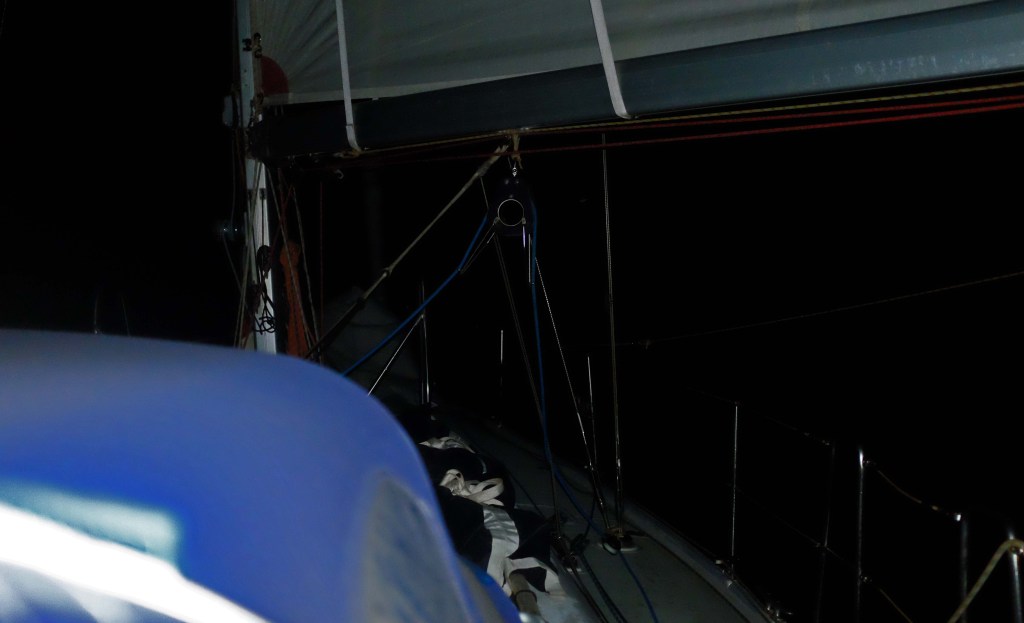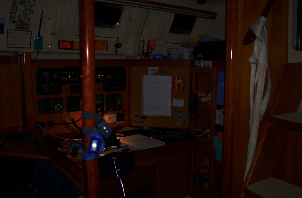 Que vais-je choisir ? Lecture, musique, podcast ? Rien, ce sera pour plus tard, je préfère m’installer dans le cockpit, me délecter de ce ciel étoilé, écouter le bateau tracer sa route en souplesse, m’émerveiller des milliers de flashs du plancton phosphorescent. Le sillage, les crêtes des vagues s’illuminent et font le spectacle, ce sont nos lumières de Noël.