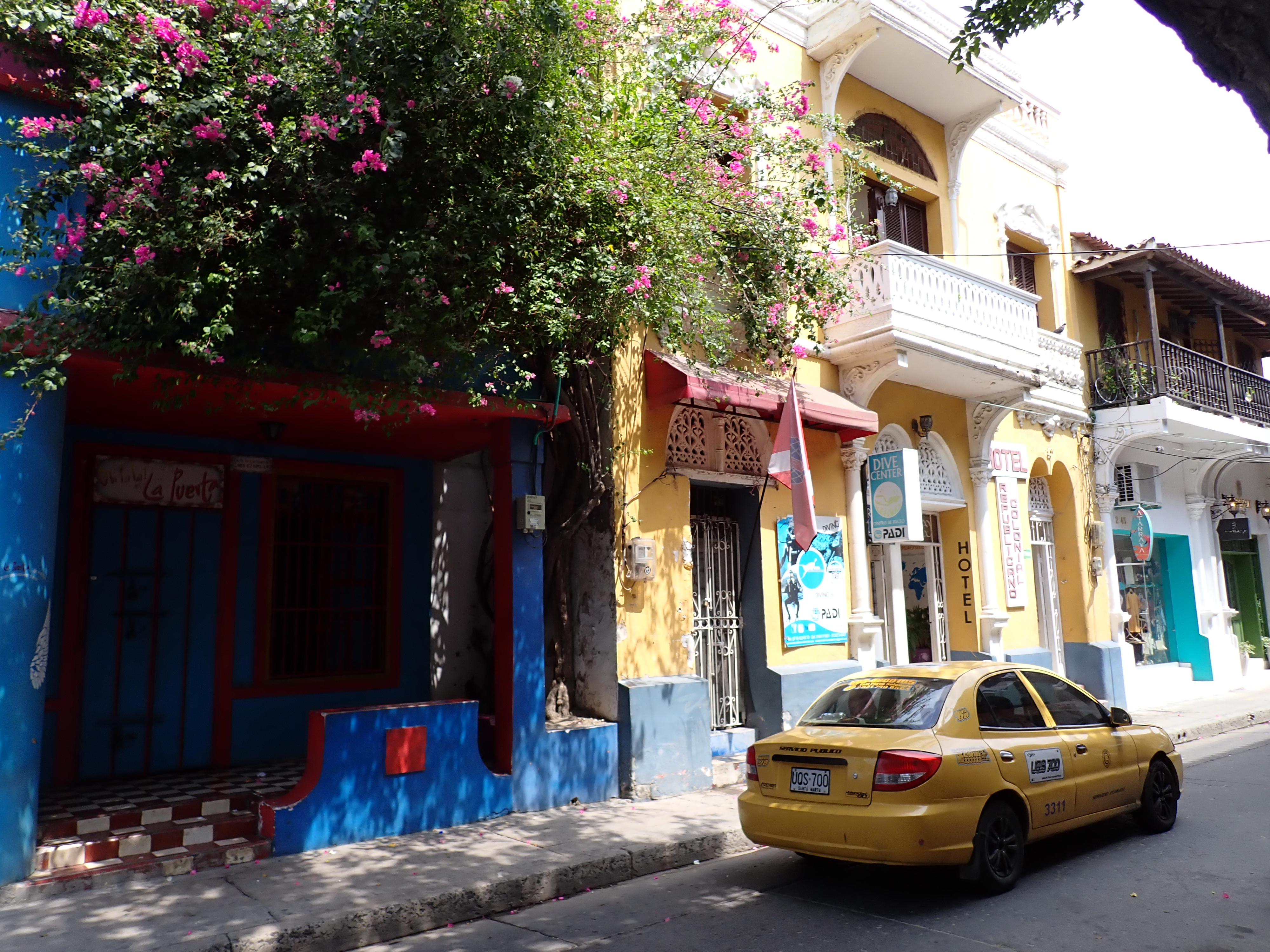 Sitôt les formalités douanières effectuées, assez longues, le douanier colombien n’ayant pas le sens de la simplification, nous voilà parti dans les rues de la vieille ville. L’architecture coloniale est assez modeste. Les façades des maisons sont toutes colorées, les peintures sont souvent défraîchies, nous ne sommes pas dans une ville musée. Il y a beaucoup de fresques murales. Les rues sont étroites, elles sont toutes en sens unique, c’est bien, la traversée en est moins périlleuse. La circulation n’est pas si importante, le pavé est partagé entre voitures et motos, selon des règles que seul un colombien muni d’un klaxon peut maîtriser.