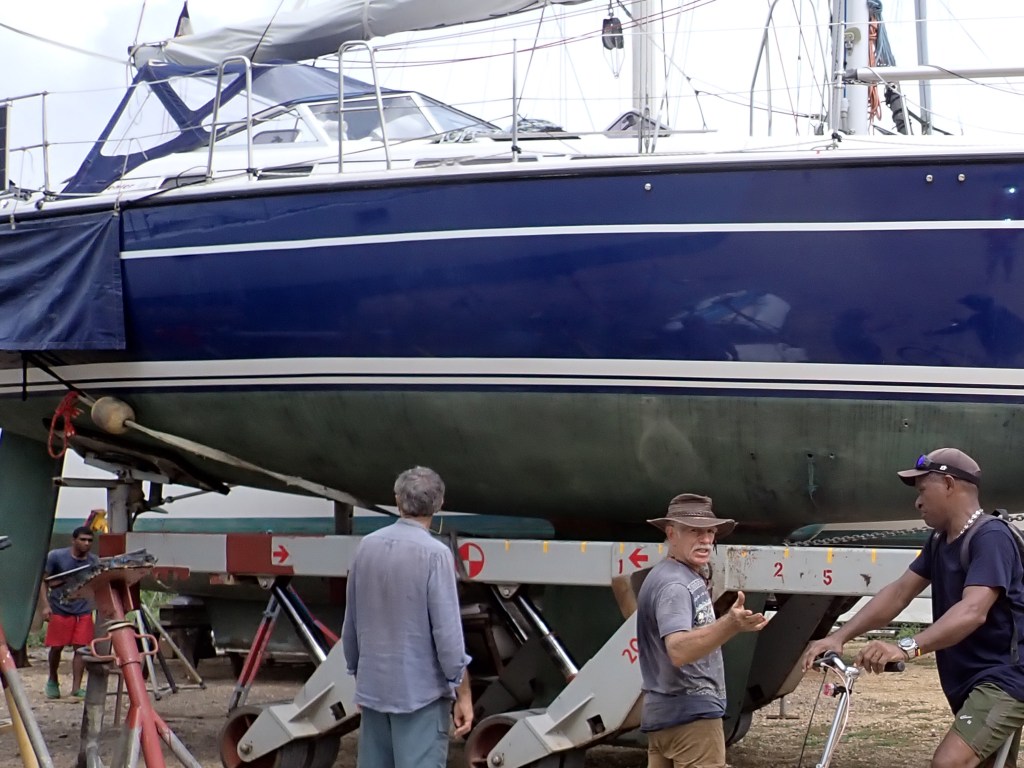 Sylvie et Jean Paul nous accueillent « chez eux ». Cette marina, c’est toute leur vie. Ils sont arrivés dans ce coin de terre perdu entre la mer et la montagne il y a une vingtaine d’année. Ils ont réalisé un travail de titan : défricher la mangrove, stabiliser un grand terrain pour stocker des bateaux à sec et construire des bâtiments. On y laisse son bateau pour une pause dans le voyage ou pour le mettre en chantier car loin de tout, on y trouve de tout. Voilier, gréeur, mécanicien, stratifieur, petite quincaillerie maritime…